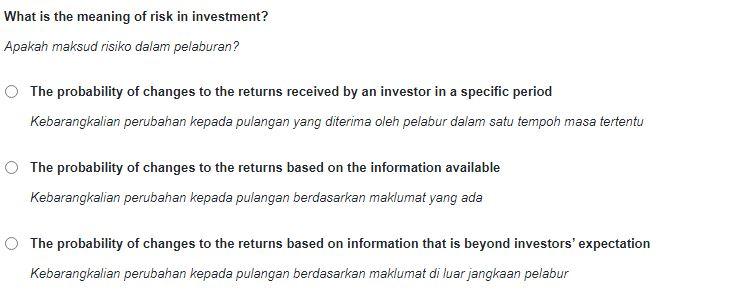 Solved What Is The Meaning Of Risk In Investment Apakah Chegg Com
